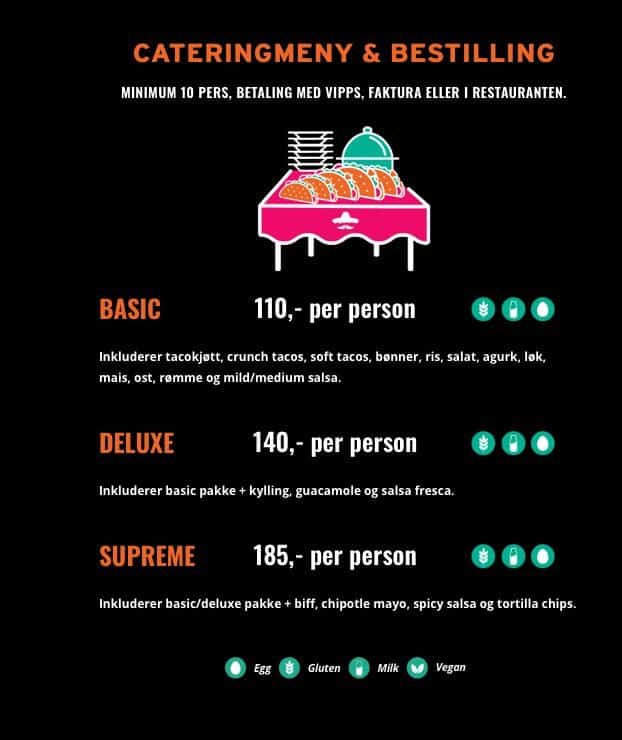 Forhåndsbetaling på 1500 kr. Dette inkluderer kjøring og 10 nydelige tacos.