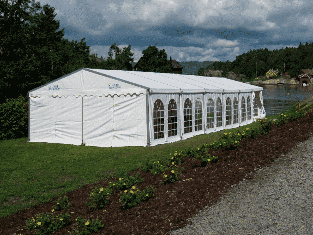 Partytelt/Bryllupstelt som brukes til alle slags arrangementer og er mest populær til bryllup. Leveres i bredder på 6 og 9 meter, og består av seksjoner man kan utvide etter eget behov. Vi kan levere disse teltene med transparente tak og vegger. Kan også kombinere med hvite og transparente takkduker.