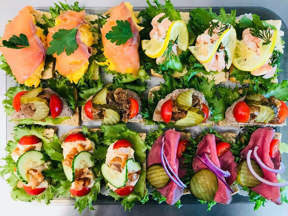 Skarpnord Catering stiller med servering og pynt til alle typer selskaper og lager annen mat.